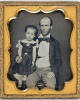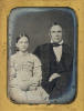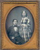 Jeune garçon au chapeau de paille Dans ce jeune couple, on devine aisément qui "porte la culotte"... Superbe daguerréotype réhaussé. On notera le soin apporté à la mise en valeur de la doublure du manteau de la demoiselle. Portrait d'un père et de sa fille. Cette dernière porte un large médaillon et de petits bijoux en corail qui ont été finement réhaussé par le daguerréotypiste.