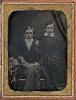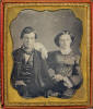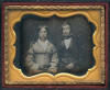 Daguerréotype sur plaque réargentée. Pose très inhabituelle au XIXème pour ce couple qui se tient par la main. Connaissant la pudeur parfois excessive de nos amis américains, ce daguerréotype en dit beaucoup sur la passion qui devait exister entre cet homme et cette femme. Daguerréotype réhaussé sur plaque réargentée.