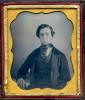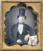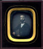 Le dos de ce daguerréotype est recouvert d'un vernis jaune. Selon Dennis Waters, ce procédé n'a été utilisé que par le célèbre daguerréotypiste Matthew Brady dans son studio du 205-207 Broadway, New-York. Daguerréotype sur plaque réargentée Minuscule daguerréotype d'une jeune femme. Le cadrage rapproché et serré du portrait indique un daguerréotype tardif. Portrait d'un américain typique "Average Joe". Daguerréotype sur plaque réargentée. "Sinister man". Daguerréotype sur plaque réargentée Daguerréotype sur plaque réargentée Magnifique portrait d'un jeune couple. Portrait d'un homme dont l'habit à larges manches laisse penser qu'il pourrait être médecin ou chirurgien. Daguerréotype réhaussé sur plaque réargentée.