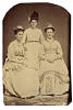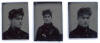 Enchassé dans un mat en laiton Trois petits ferrotypes d'une même jeune femme.